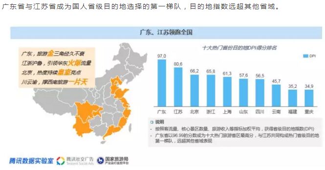 廣東省與江蘇省成為國(guó)人省級(jí)目的地選擇的第一梯隊(duì),目的地指數(shù)遠(yuǎn)超其他省域。