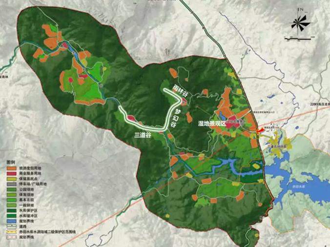 海南呀諾達雨林文化旅游區(qū)整體規(guī)劃面積45平方公里,外圍有123平方公里的生態(tài)恢復保護區(qū)。根據(jù)區(qū)域自然環(huán)境與自然資源適宜性的等級分析為核心,區(qū)域內(nèi)的用地情況有旅游度假用地(橙色)、商業(yè)服務用地(紅色)、保留居民點(黃色)等等。因此整個區(qū)域內(nèi)有以絕對保護為主的原始熱帶雨林區(qū)、可以徒步的山地活動區(qū)、旅游觀光區(qū)和生態(tài)居住區(qū)。