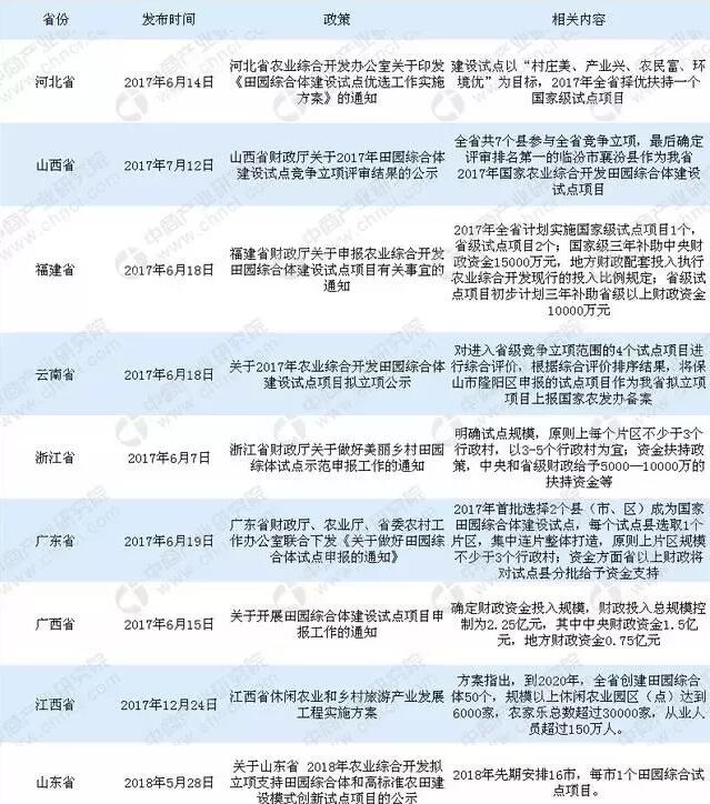 田園綜合體具有很強(qiáng)的商業(yè)價(jià)值,能帶動(dòng)新農(nóng)村發(fā)展、提升農(nóng)民收入,將會(huì)為地方土特品牌的打造和提升、鄉(xiāng)村旅游的開發(fā)和利用、民俗文化的挖掘與傳承、農(nóng)民朋友的創(chuàng)業(yè)和增收等涉及農(nóng)業(yè)、農(nóng)村的各行各業(yè)創(chuàng)造更大的發(fā)展空間。許多省份都有了相關(guān)支持政策。